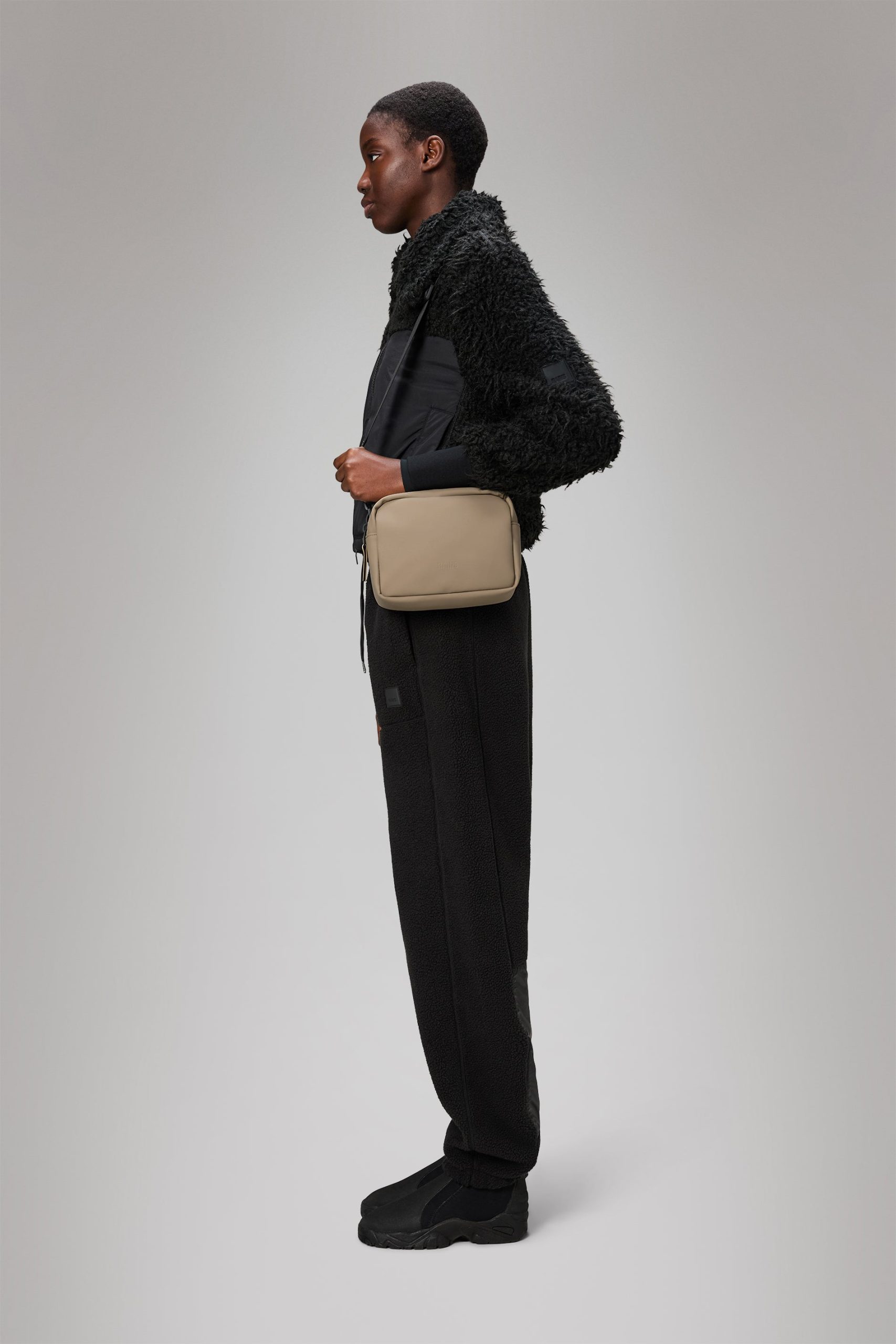 Box Bag features a single main compartment with a coated zip closure for easy access. The size is ideal for carrying an additional layer and daily essentials.