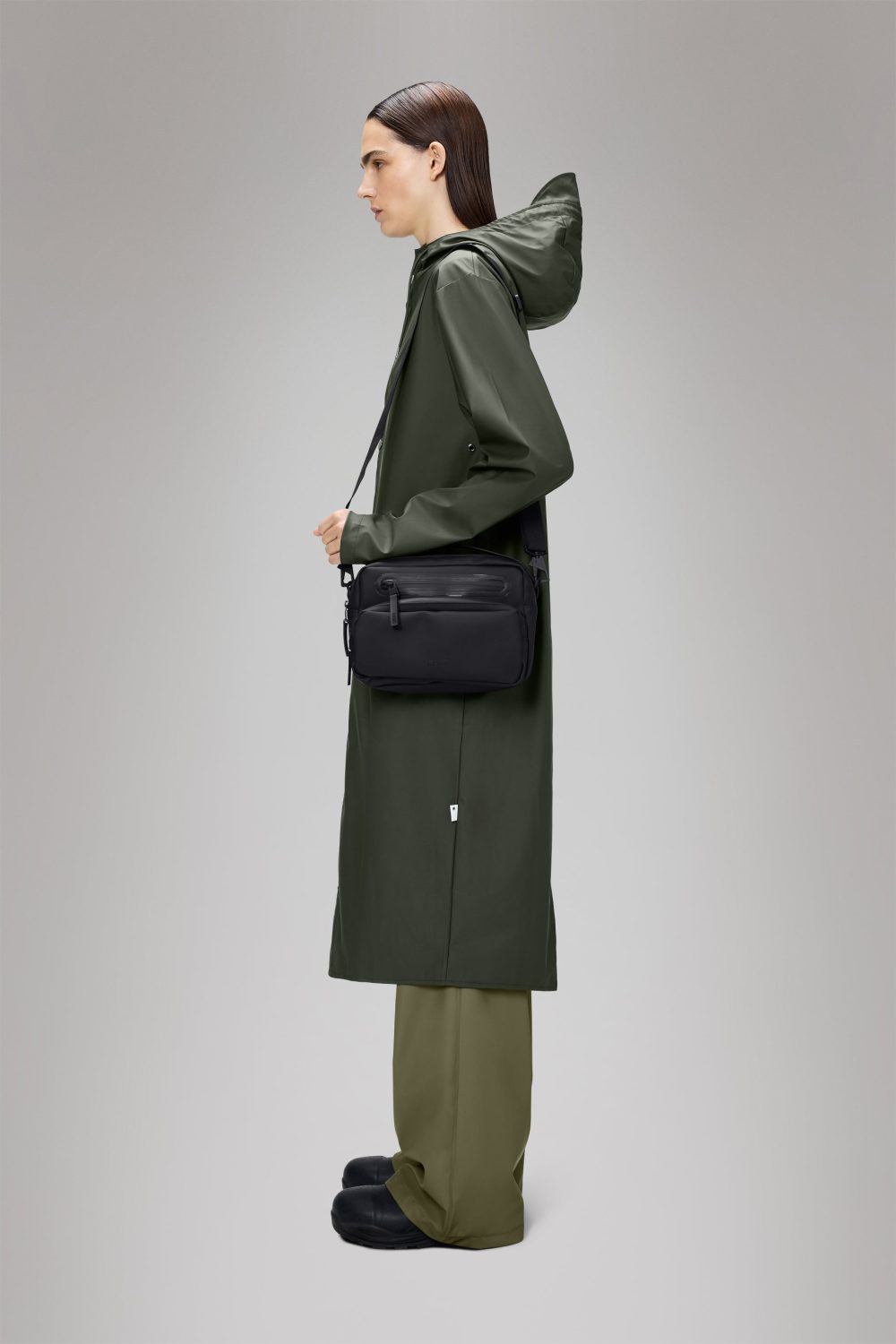 Cargo Box Bag is cut from Rains’ signature PU fabric, engineered for carrying strength, durability and a smooth feel.