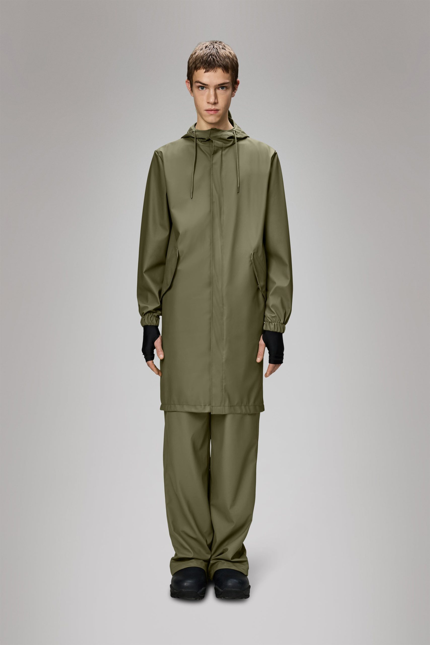 This rain jacket is cut from Rains’ signature PU fabric and features welded seams. The finish is lightweight with a smooth feel.